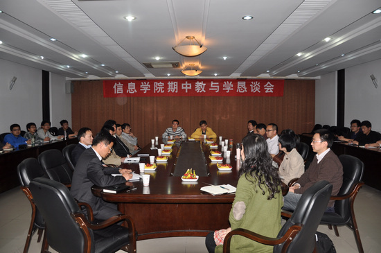 为进一步加强师生之间的沟通交流,提升学院的教学工作质量水平,近日,信息学院在文彬楼第七会议室召开10级、11级期中教学恳谈会。院党委书记柳铭、院长马正华、副书记储志新以及部分任课教师代表出席了会议,10级和11级学生辅导员和各班级学生代表参加了本次座谈会。