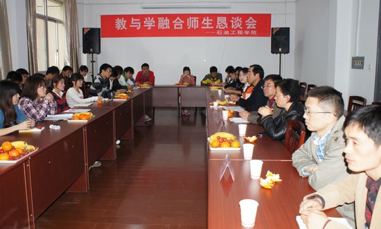 为更深入了解学生,建立和谐师生关系,近日,石油工程学院教与学融合师生恳谈会在院三楼会议室顺利召开,院党委书记张炳生、院长王树立出席了恳谈会,各年级辅导员、各任课老师代表以及各班学生代表参加了此次会议。