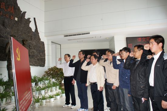 活动中,党员们先后参观了苏南抗战胜利纪念碑和新四军江南指挥部展览馆,一幅幅照片,一件件文物,再现了新四军英勇战斗的场面。同仇敌忾,浴血奋战,革命先烈那种对党的忠诚执着,面对敌人大无畏的革命精神,深深感动在场的每一名党员。之后,在革命功臣塑像面前,面对着党旗,教职工党员重温了入党誓词。张炳生书记希望广大教职工党员要按照“先进在岗位、优秀在业绩”的总体要求,继承革命先烈的优良传统,努力践行先锋模范作用,在教学、科研和管理岗位上体现党员的先进性,以优异的成绩迎接党的十八大的召开。