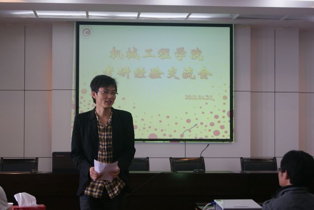 作为机械工程学院学业规划工作的重要内容,4月25日下午,该院在白云校区第一会议室召开2009级考研交流会。此次交流会特邀我校校友,南京航空航天大学在读博士生程涵,08级优秀考研学子张银亮、李凯、王晓峰、支则君作为嘉宾,与09级准备考研的同学面对面交流考研心得,分享考研体会。交流会由学工办王彩芳老师主持。