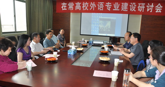 为了研究新形势下外语学科建设方向和专业发展思路,进一步推动专业教学改革,加强兄弟院校之间的交流,5月8日下午,外国语学院举办在常高校外语专业建设研讨会,邀请了来自河海大学、江苏技术师范学院、常州工学院和常州信息职业技术学院的14位专家来校一起探讨高校外语专业建设。会议由外国语学院院长薛荣主持。