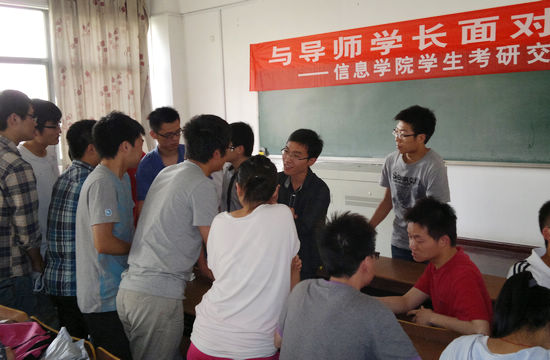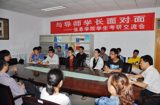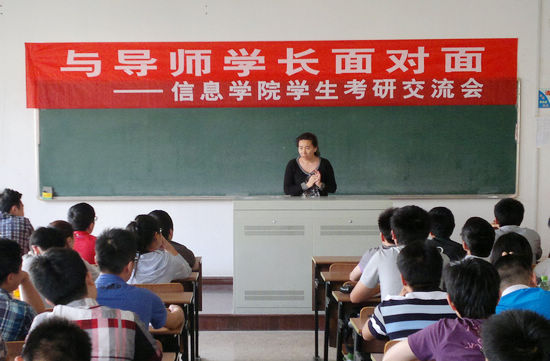为了进一步落实学业规划,搭建学生考研经验交流平台,给备考的同学提供更多的考研经验,近期,信息学院分专业举行了“与导师学长面对面”暨学生考研交流会。学院各专业部分系主任、硕士生导师、08级考研学长以及09级备考学生参加了活动。交流会由09级辅导员老师主持。