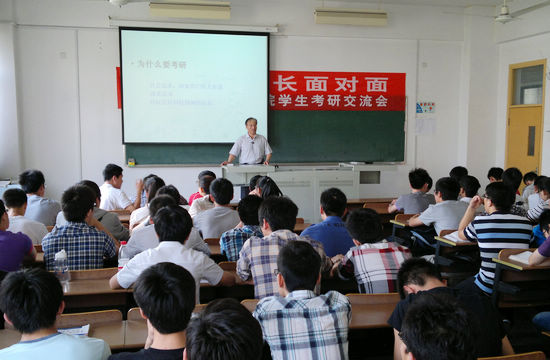 各系主任、硕士生导师就为什么考研、如何选取考研学校、考前如何准备等考研流程做了讲解,重点讲述了专业选择方向、专业课的学习、报考我校的相关政策,并鼓励在座的学生积极备战考研,只有不断学习,才能跟上时代的步伐,不被社会所淘汰,通过考研让自己的人生有一个更好的选择。
