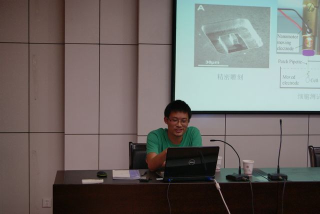 之后该院研究生魏银文作题为“压电驱动技术及压电驱动器的运用研究”的报告。他讲解了压电驱动的原理,重点介绍了压电驱动器的应用研究。