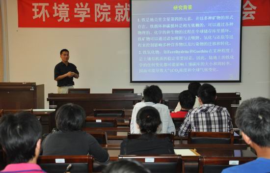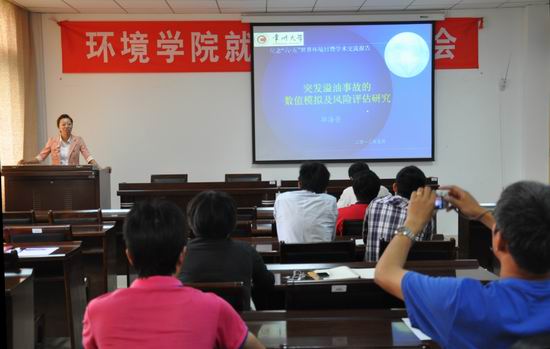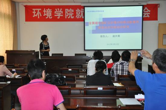 五位主讲人从研究背景与意义,研究的内容与方法,研究的数据与结果以及研究的结论四个方面分别作了题为《污泥厌氧消化中产酸微生物的微生态研究》、《光催化耦合膜分离水处理技术研究》、《金属硫化物矿山环境中特殊功能菌的筛选及其对硫化物的分解》和《突发溢油事故的数值模拟及风险评估研究》的报告。参加报告会的老师与研究生认真听取了报告,并就其中一些问题进行了探讨和交流。