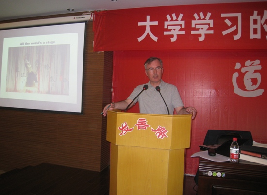外教Peter Court介绍了三位世界著名的作家,达尔文、亚当斯密和莎士比亚以及他们的传世著作,为大家解读了他们对世界文明与进步的影响。外教Peter Court通过深入浅出的讲解,让常大师生领略了西方各时期经典艺术作品的不朽魅力,同时也让大家体会到“书籍是人类进步的阶梯”,很多书籍是生活与社会的缩影,通过阅读西方经典书籍可以让我们更加明智。