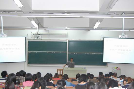 近日,外国语学院邀请学院关工委范嘉碧老师在第九阶梯教室举办了学生干部培训讲座,会议由学工办林方毅老师主持,09级至11级的所有学生班干部参加了此次讲座。