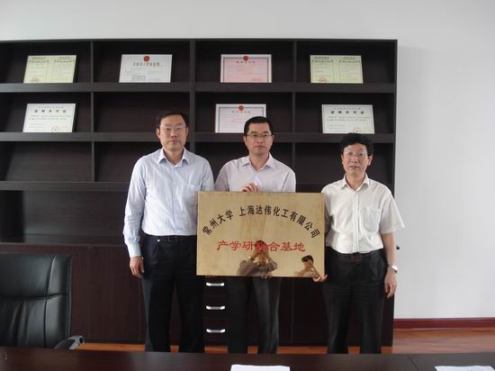 会上,上海达伟化工有限公司总经理孙国中致欢迎辞,他介绍了达伟化工有限公司的发展概况,认为常州大学与公司的产学研合作是借助高校高端人才实行与企业联姻的又一件盛事,企业要想加速发展,必须要依靠高新技术力量的支撑。上海高森水处理有限公司介绍了公司的发展历程、企业规模、员工队伍、企业文化、主要产品等内容。他们表示今后作为常州大学的合作单位,将积极配合学校的科研教学活动,让校企双方携起手来,共同打造一个优秀的产学研联合基地。