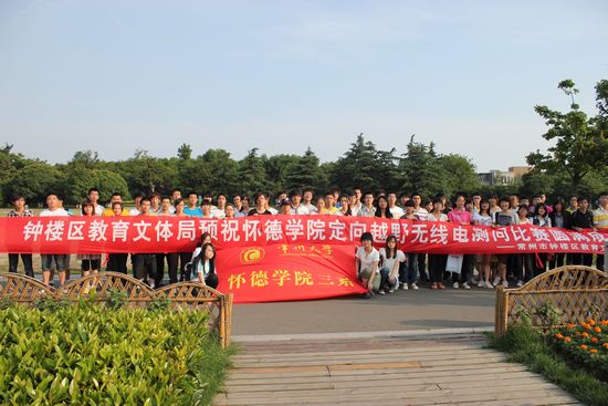 挑战,拼搏,奔跑,合作,近日,由怀德学院和钟楼区教育文体局联合举办的定向越野无线电测向比赛在青枫公园举行,来自常州各大高校的近70名选手参加了本次活动。