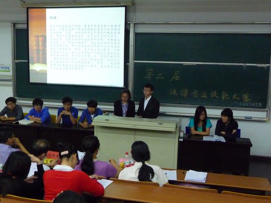 6月1日晚,文法与艺术学院第二届法律专业技能大赛在十二阶举行,大赛邀请了文法与艺术学院法律系相关老师担任评委,来自法学10级、11级的六支队伍参加了比赛。