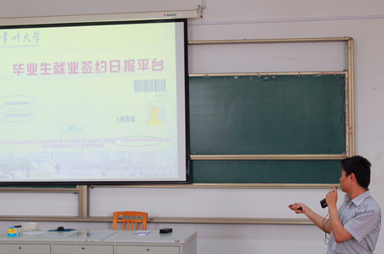 周屹峰老师首先从“就业签约日报平台、就业派遣情况、毕业后要做的事”三个方面给毕业生们讲解了与就业、派遣相关的事宜,并提醒毕业生抓紧落实工作,争取顺利派遣。