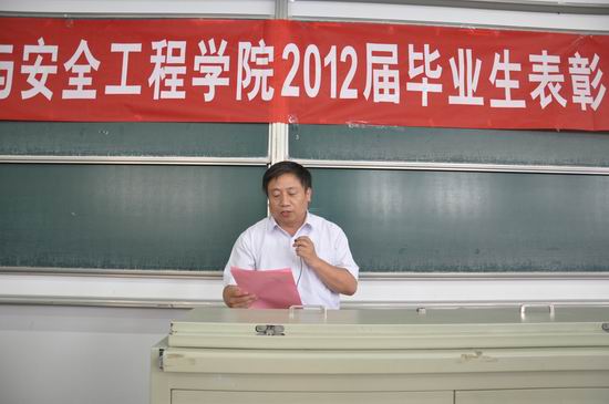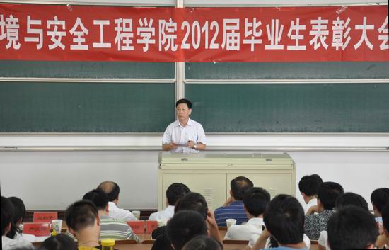 6月15日下午,环境学院在W12举行了2012届毕业生考研表彰大会。学院党委书记朱正伟、院长李定龙、副书记许波、副院长王利平、副院长张凤娥、各系主任、教研室老师和学工老师出席会议,08级考研学生、学生骨干和09级部分考研学生参加了此次考研表彰大会。会议由院学工办主任陈鸿主持。
