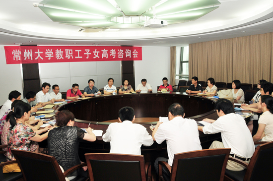 6月20日上午,校学生处、工会在武进校区第一会议室联合召开2012年教职工子女高考咨询会,会议由工会主席袁能主持,来自全校各部门、各单位的考生家长参加了会议。