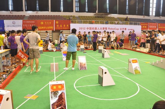 2012中国服务机器人大赛暨RoboCup中国公开赛(徐州赛场)8月1日在中国矿业大学拉开帷幕,经过三天激烈角逐,由信息学院选派的六支队伍分别取得全国二等奖5项,三等奖1项的好成绩。
