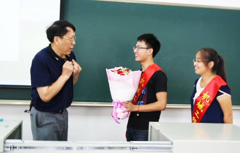 上午7:30,装备09级学生为教授《机械设计》课程设计的郑伯伟老师带来了惊喜。该班同学郑重为老师送上鲜花并打出横幅,齐身起立送上“郑老师,节日快乐”的祝福。执教近30年的郑伯伟老师着实被突如其来的惊喜感动了,他表示,这是他第一次在课堂上收到这样厚重的祝福,感觉心里暖暖的,很温馨。装备092班陶幽妍同学告诉记者,2012年的教师节是我们2009级在校能给老师过的最后一个节日,我们很感谢母校和老师的辛勤培育。