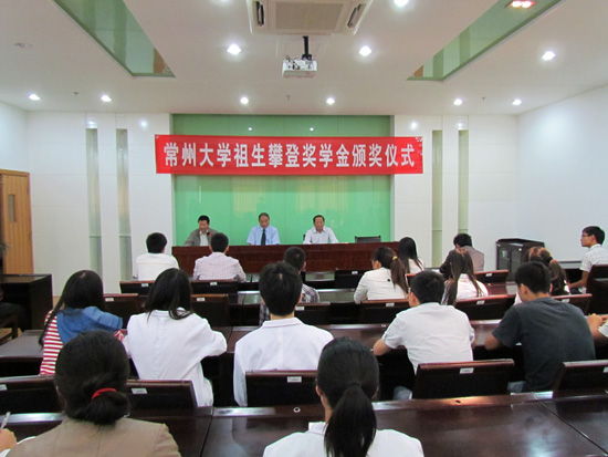 俞强院长首先为大家介绍了黄文浩教授的科研成果和“祖生攀登奖学金”的由来。丁建宁副校长宣读了2011、2012年度“祖生攀登奖学金”获奖研究生名单,希望全体研究生向他们学习,为科研事业奉献自己的一份力量。黄文浩教授为获奖的研究生颁奖,以自己的亲身经历讲述中国科研的现状和大力发展科研事业的重要性,鼓励研究生认真投身科研事业。