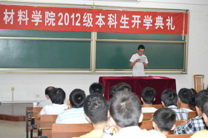 常州大学材料学院新生开学典礼于9月13日上午在武进校区8阶顺利举行。参加大会的有院党委书记周开扬,院长俞强,副院长丁永红、胡静,学工办各年级辅导员老师,以及大一各班班主任老师,本次大会由院党委副书记李文明老师主持。