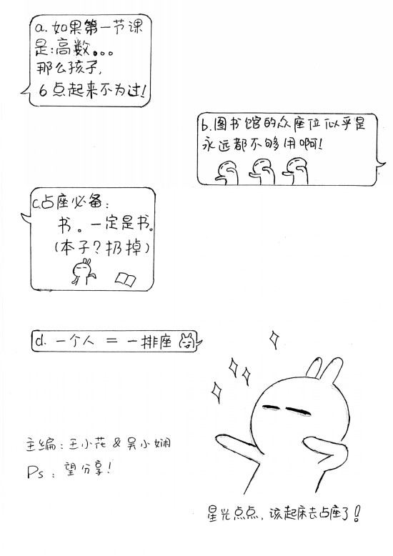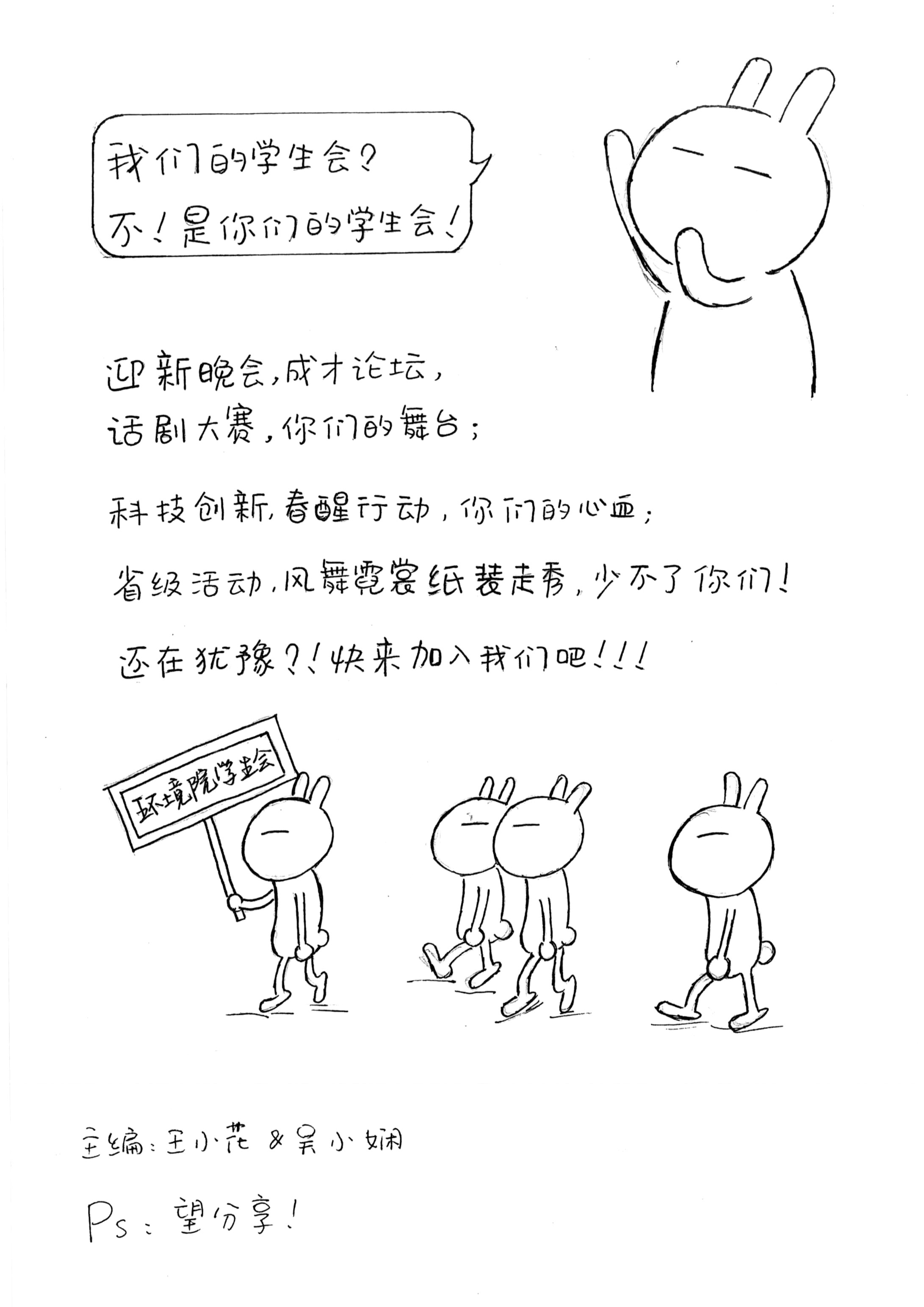为帮助2012级新生尽快适应大学学习与生活,近日,环境与安全工程学院学工办组织院学生会编绘《“漫”读常大•七略 》,以轻松幽默的漫画、青春活泼的网络语言来生动解读大学学习与生活,内容涉及食宿、购物,学习、休闲,课内、课外等多个方面,受到新生们的普遍欢迎。