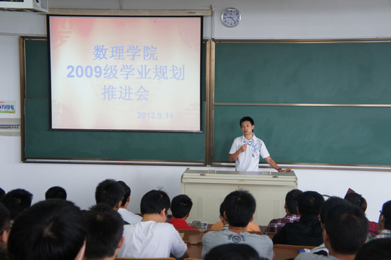 9月14日、16日,数理学院分别在12阶、16阶举行2009级、2010级学业规划推进会。学院党委副书记张功峰出席并讲话,2009、2010级全体学生参加了大会。