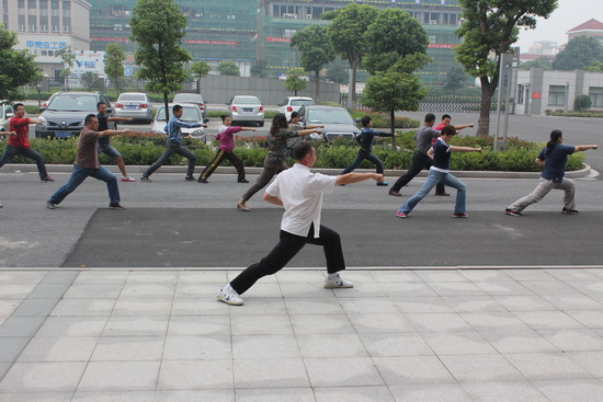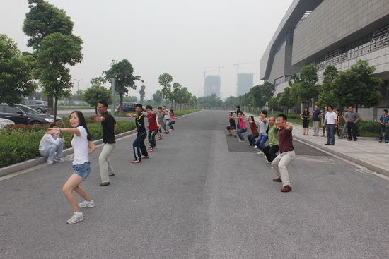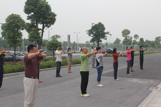 为了促进我校公共体育课程改革,更快适应新生体育课程教学,提高学院体育教师业务水平,该院组织了全体教师进行业务学习和锻炼——学练五步拳。