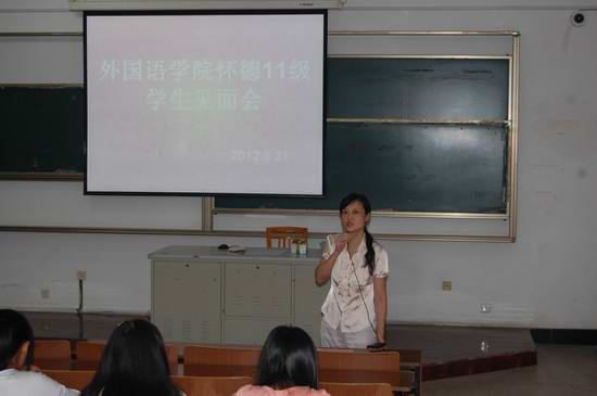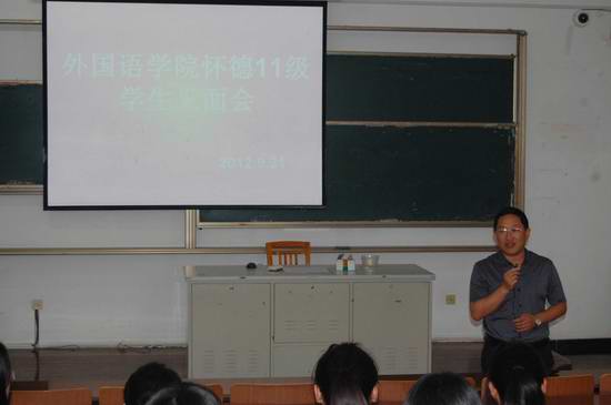 怀德学院2011级英语和日语专业的同学今年刚刚从白云校区转到武进校区学习生活,各个方面还处于适应期,此次学生见面会有助于同学们尽早融入外国语学院的学习生活氛围,为尽早制定自身的学业规划、树立远大的目标打下坚实的基础。