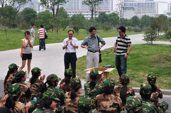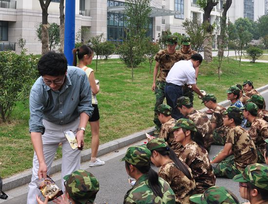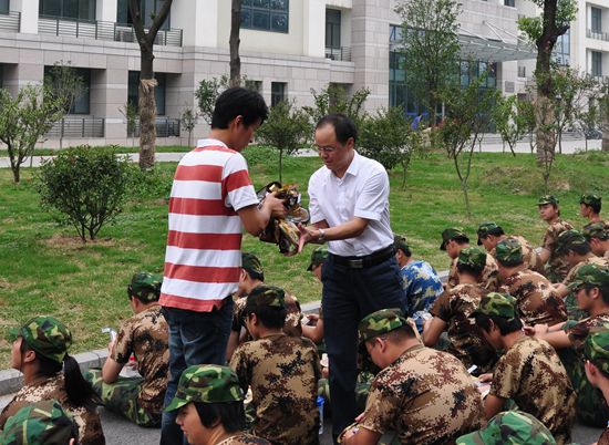 向军训新生发慰问品