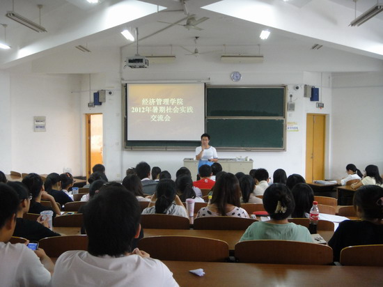 近日,经济管理学院在W16阶举行了一场暑期社会实践活动经验交流会,交流会由学工办老师担任评委,来自不同年级的九支代表队伍参加了比赛。