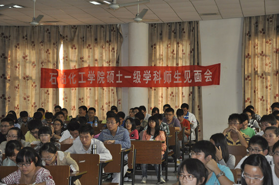 见面会上,石化学院王车礼书记向在座的大四考研同学详细介绍了学院研究生教育雄厚的师资队伍、完善的学科体系以及追求创新的科研精神。陈智栋部长从学校研究生招生的政策层面向同学们解读了2013年我校研究生招生情况和报考本校研究生的优势。制药学院张跃院长介绍了新增学位点情况,李永昕、姜兴茂两位教授代表与同学们分享了各自团队研究的近况和取得的新成果。