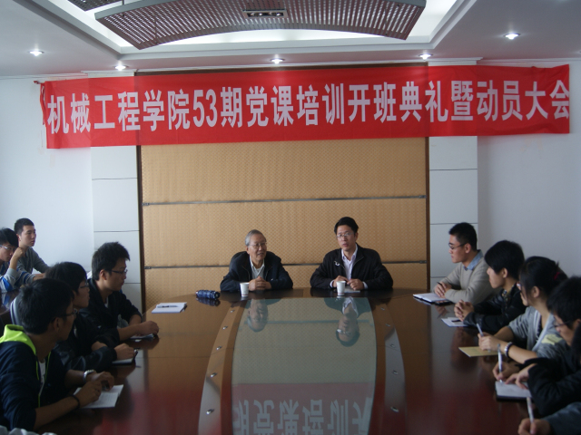 10月26日上午,机械工程学院在南区第四会议室召开了第53期党课开班典礼暨动员大会。我校原党委书记,关工委张国忠老师、院党委副书记吴荷平及相关辅导员出席了会议。