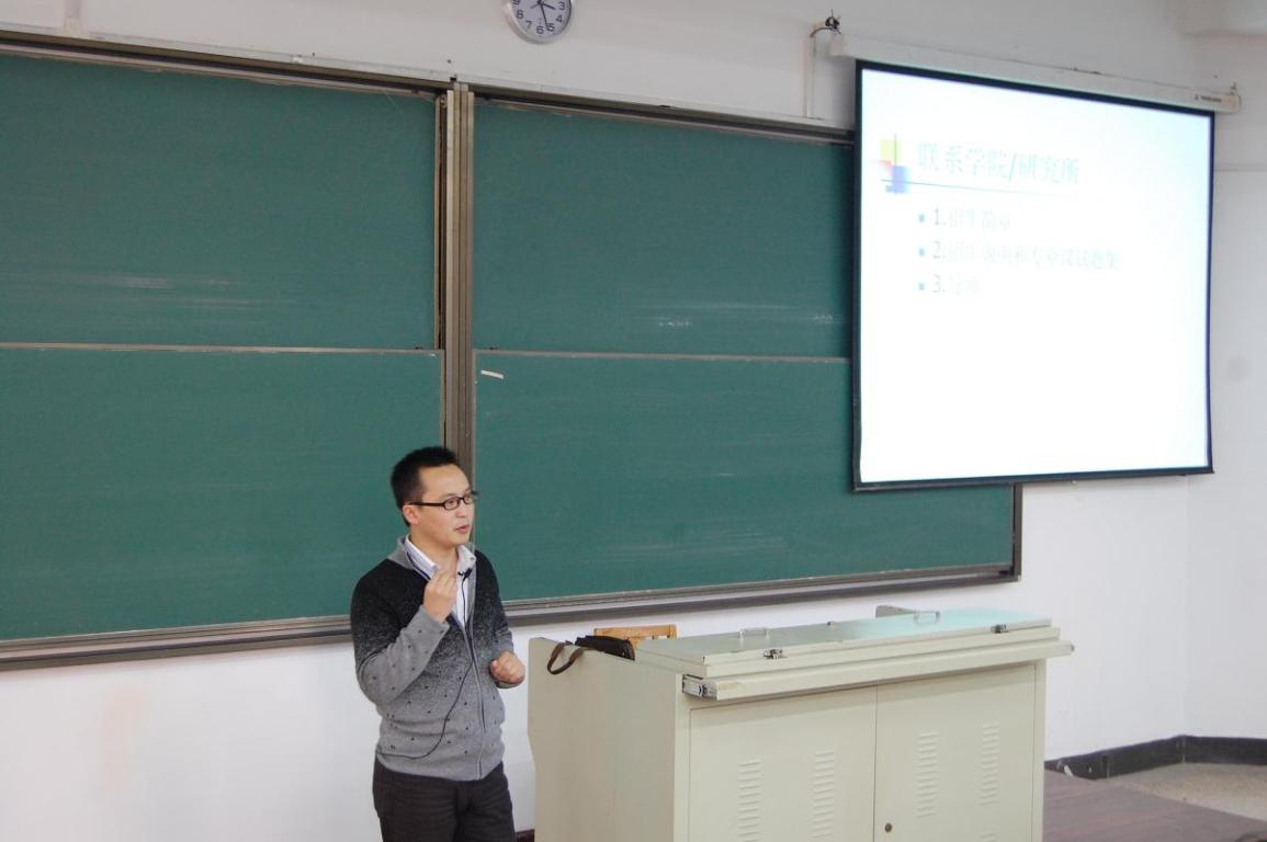 为帮助大三学生尽早确立奋斗目标,树立考研信心,10月31日下午,外国语学院学工办特邀院英语专业陈磊老师为2010级有意向考研的学生举办了“考研准备与录取”导学专题讲座,系统介绍了考研的流程与准备程序。10级共55名学生参加了此次讲座。