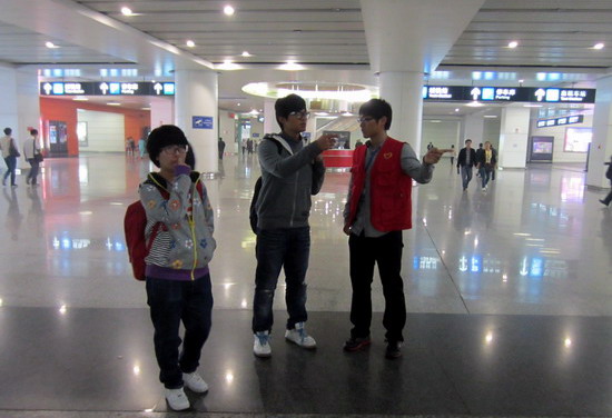 在客运中心,志愿者结合公交路线及常州地图耐心细致为旅客指路,向需要帮助的朋友伸出援助之手。旅客们对我们的志愿者都表示很感激,也很感动。在他们眼中无私奉献的志愿者不仅为有求者排忧解难,更为常州这座城市塑造了良好的城市形象,个性化的服务在城市名片上增添了青春的无限活力。