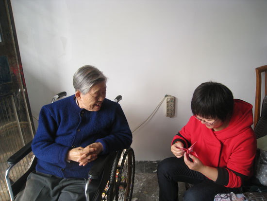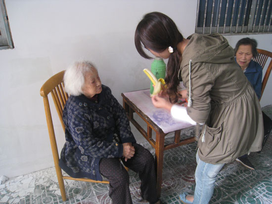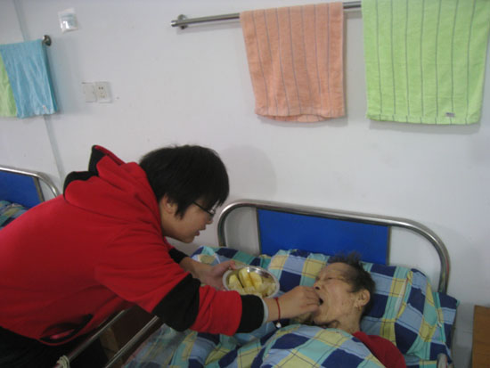 同学们在抵达了武进康福老年公寓和鸣凰街道办之后,便开始对房间和客厅的窗户进行清洁,对老人的房间、卧室进行整理,学生党员、积极分子还主动帮老人们洗头,修指甲等,志愿者们还亲手把削好了的水果喂给没有行动能力的老人,有些志愿者还给老人们折起了千纸鹤,表达对老人们的深深祝福。