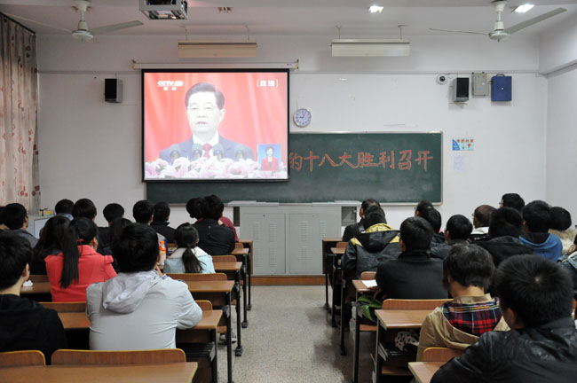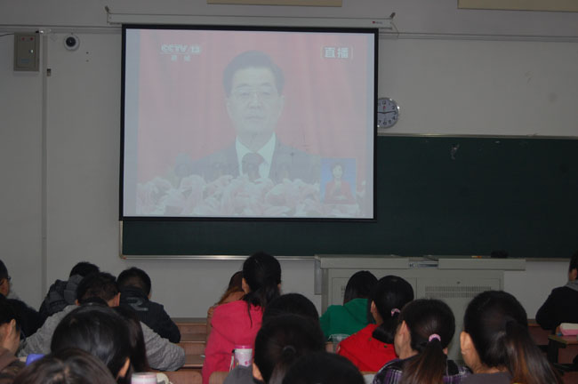 我校组织师生集中收看党的十八大开幕式盛况