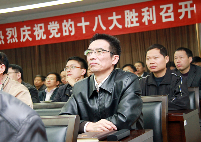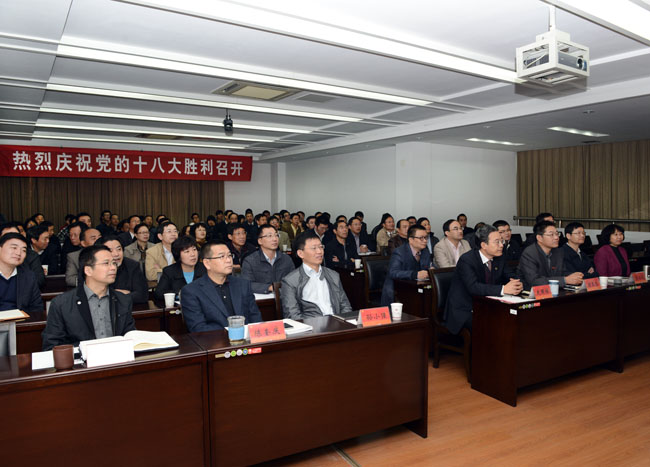 11月8日上午九点,万众瞩目的中国共产党第十八次全国代表大会在北京隆重开幕,胡锦涛代表中国共产党第十七届中央委员会向大会作题为《坚定不移沿着中国特色社会主义道路前进 为全面建成小康社会而奋斗》的报告。校领导、校党委理论学习中心组成员和机关中层干部,民主党派代表,教师代表,思想政治理论课教师,学生代表等在第四会议室集中收看了大会直播盛况,认真听取了胡锦涛总书记作的十八大报告。石油化工学院党委和研究生党支部、机械工程学院党委、环境与安全工程学院党委、外国语学院党委等基层党组织也根据实际情况安排党员干部和师生员工收听收看了党的十八大开幕式。