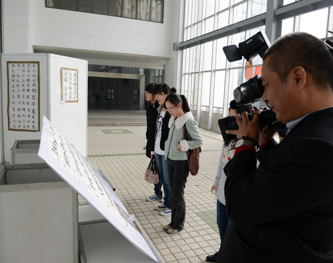常州电视台、常州电台、武进电视台报道我校“喜迎十八大 争创新业绩”师生书法绘画摄影展活动