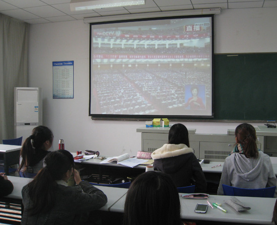 为了让师生第一时间了解十八大开幕盛况,学院在多功能厅和其它多个教室开辟了会场同步直播平台,供师生观看开幕式盛况;部分师生通过网络直播在线收看了十八大开幕式,该院境外学生党员、积极分子也自发通过网络观看了现场直播。