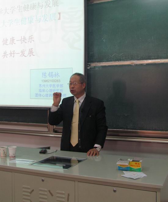 为了帮助2012级新生尽快适应大学生活,培养积极向上健康的心态,11月8日,苏州大学心理健康教育资深专家陈锡林教授应邀来我校,在W2阶为2012级新生作了题为“心”时代大学生健康与发展的主题讲座,经济管理学院新生聆听了讲座。
