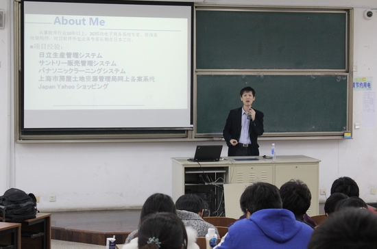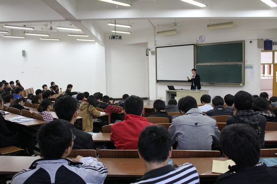 周羽先生以自己的工作经历为引子,生动详细的讲述了自己经历的IT行业过去几年的发展情况及该行业的良好的就业形势。他介绍了信息电子产品的发展历史,展示了“谷歌眼镜”这一新开发产品的魅力,从而对IT行业的就业前景做了相关预测,并与现场学生进行良好的互动。