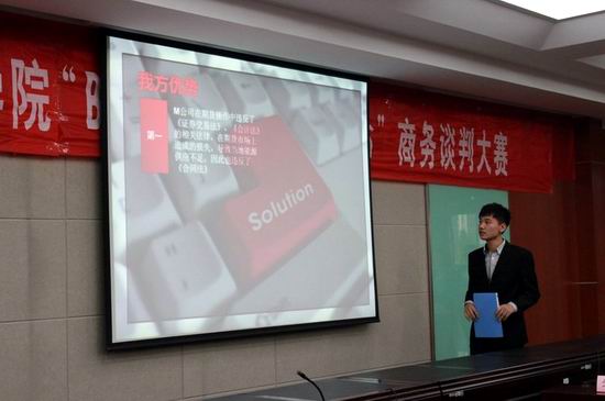 商务谈判模拟实践中,角色扮演的同学们不仅提前熟悉了商务活动的流程,也明确了团队合作的意义,提高了组织协调与思维表达能力。唇枪舌战绽放智慧之花,商才口才奉献视听盛宴,至此经济管理学院第二届商务谈判大赛落下帷幕。