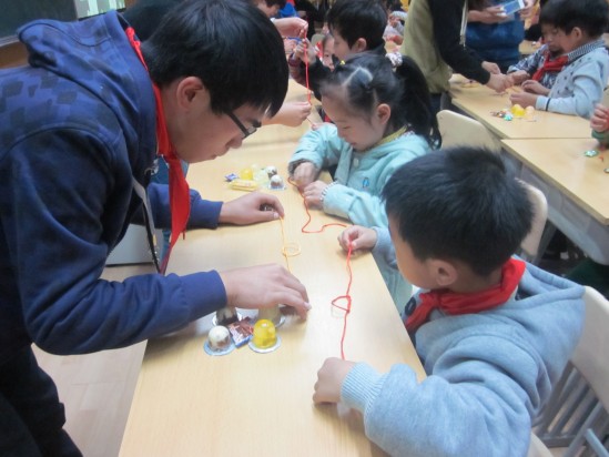 “安全结结看”活动中,环境与安全工程学院党团志愿者们赴星辰实验学校,安全志愿者们将专业知识引入“第二课堂”,带领小学生们学习消防安全常识,学打“安全逃生结”,并重点介绍了丁香结、渔人结、速解结三种方式。丁香结的作用是能够将绳子的一端固定在牢固地方;渔人结是把几条较短的绳子接在一起变成长绳子,是一种越扯越紧的结;速解结不但能够很牢固的绑住东西,而且只需简单拉动活端即可快速解开。这三种结绳的方法结合在一起,就形成了一个安全的逃生绳索。这个集知识性与趣味性于一身的活动受到了孩子们的热烈欢迎,提升了孩子们的安全意识和自救能力。活动最后,志愿者们的带领下,孩子们一起用矿泉水瓶盖拼成了一面党旗,学唱了歌曲《歌唱祖国》,以环保节能的方式祝福十八大胜利召开。