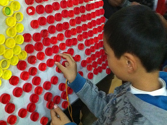 献礼十八大:孩子们用矿泉水瓶盖拼成了一面党旗祝福十八大胜利召开