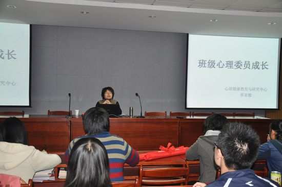 讲座中,蔡老师从心理委员扮演的角色以及在班级中所起到的作用入手,向大家详细的介绍了心理委员的素质和要求,具体工作职责,定位了心理委员三种角色,她重点向大家讲解心理委员应该掌握的知识和基本工作技能。结合自己多年的大学生心理辅导实例,她向大家传授心理委员应该如何开展工作及危情处理办法。讲座结束后,大家就各自感兴趣的问题与主讲老师进行了深入交流。