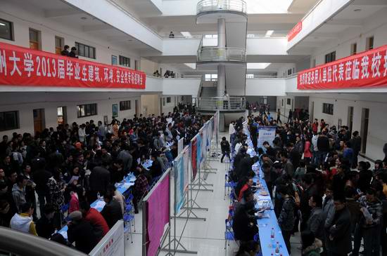 11月17日,由学生处、环境与安全工程学院共同举办的常州大学2013届毕业生建筑、环境、安全类专场招聘会在教学辅楼大厅成功举办。中国石化江苏石油分公司、中建工业设备安装有限公司、中海石油中捷石化(华岳化工)有限公司、上海建工二建集团有限公司、上海金山石油化工建筑有限公司、江苏金陵建工集团常州分公司、海澜集团、南京南化建设有限公司、江苏常隆化工有限公司等70多家单位来校招聘,所需岗位除涉及建筑、环境、安全、给水等专业外,还兼涉电子、机械、化工、材料、生物等多个专业,提供就业岗位1500余个,吸引毕业生800余人次。学生处和环境学院领导在相关工作人员的陪同下视察了招聘会现场,并对招聘会工作进行了指导。