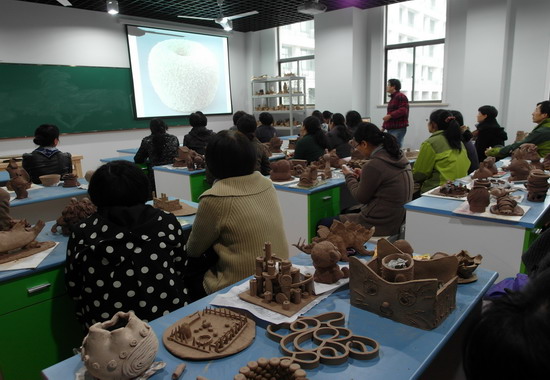 为不断提高教师实践动手能力和艺术修养水平,由校工会、艺术学院、教务处共同主办的“常州大学第一期教工陶艺制作技艺培训”活动于11月9日顺利开班。此次活动是学校大学生科技与艺术创新中心投用以来举办的首期教师培训。艺术学院刘德龙老师给学员们讲解了陶艺基本概念和制作技术要领。学员们亲自动手制作,卡通动漫形象、装饰品、生活用具等作品件件形象生动,各具特色。活动深受教工们的喜爱,今后学校会继续举办同类活动,不断提高师生动手能力,使校园艺术氛围更加浓厚。