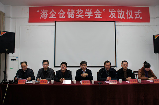 会议伊始,张炳生书记致欢迎词,接着史先召总经理表达了该公司对我院毕业生的认同与渴望,他希望能够与常州大学共同携手,合作双赢,随后由王树立院长宣读首次“海企仓储奖学金”获奖名单。学院共有饶永超、齐大谦等十位同学获奖。