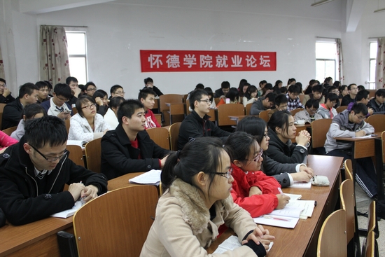 2013年全国各地高校毕业生就业工作已陆续启动。为进一步加强毕业生就业指导和服务,切实做好2009级毕业班学生就业工作,近日,怀德学院举办首届“向就业看齐”大学生就业论坛,多角度为毕业生就业“把脉”“充电”,论坛吸引了该院近千余名毕业生参加。