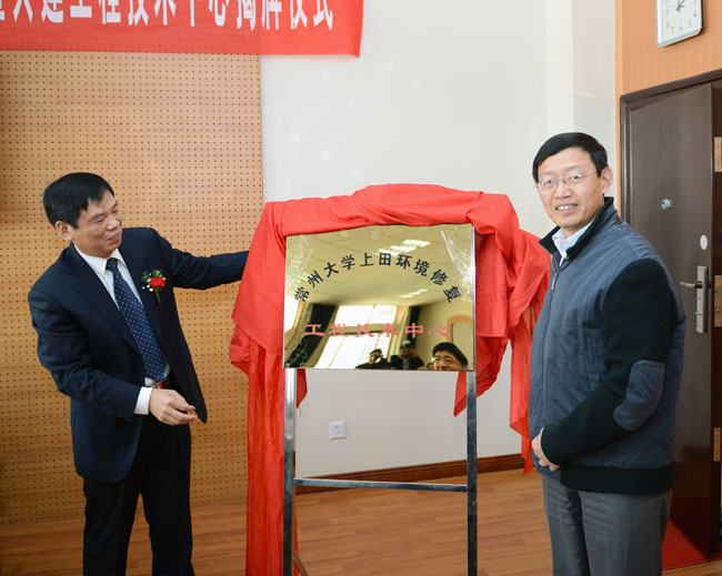 常州市人大常委会副主任邵明与我校党委副书记孙小强为“常州大学上田环境修复工程技术中心”揭牌