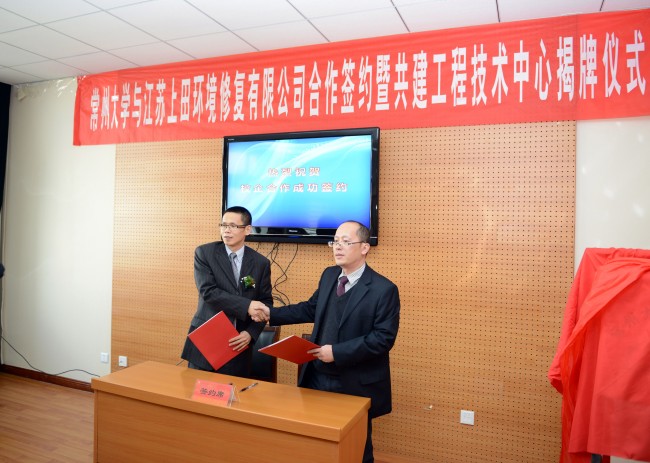 我校与江苏上田环境修复有限公司合作签约暨共建工程技术中心揭牌仪式