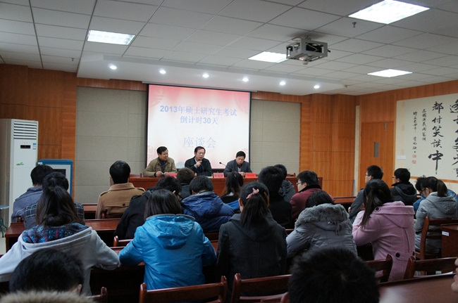 12月5日下午,在距离考研倒计时30天之际,数理学院召集09级考研同学,于逸夫理科楼516召开座谈会,学院院长孙玉强、党委副书记张功峰、副院长石澄贤出席座谈会。