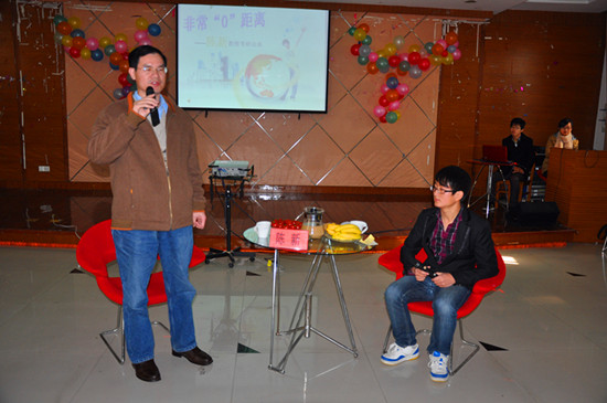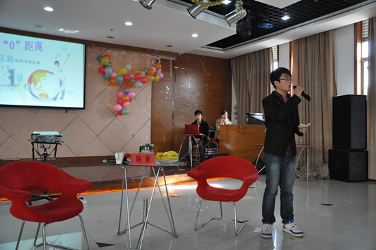 近日,继“非常零距离”之邓林红教授之后制药与生命科学学院又举办了另一场别开生面的访谈活动——“非常零距离”之海归学者陈新教授。学院辅导员以及10级全体学生在团委多功能报告厅参与了此次活动。